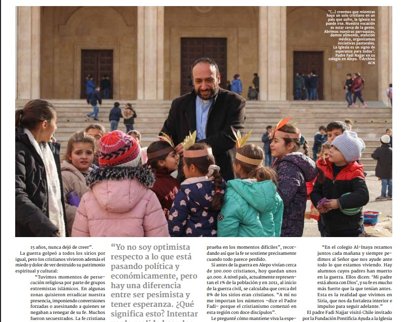 Compartimos con uds la publicación en Diario Financiero, a través de Humanitas, de lo que fue la visita del Padre Fadi Najjar a Chile. El sacerdote sirio Fadi Najjar visitó Chile para dar a conocer la dura realidad que vive su comunidad en Alepo: una ciudad marcada por catorce años de guerra, por la pobreza […]